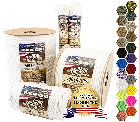 (タフグリッド) TOUGH-GRID パラコード パラシュートコード 純正軍用仕様タイプIV 750ポンドパラコード 米軍使用 MIl-C-5040-H 100%ナイロン 米国製 200Ft. (WOUND ON TUBE) ホワイト