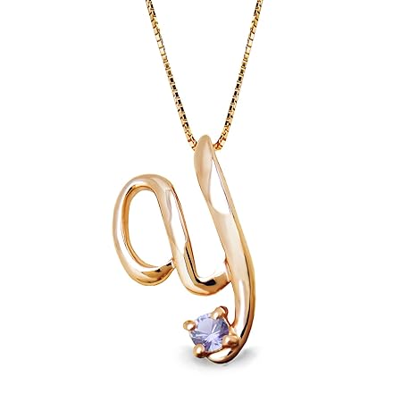 [ミワホウセキ] イニシャル Y 選べる 誕生石 付き ピンクゴールド アルファベット ネックレス (12月 タンザナイト)