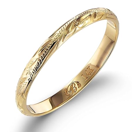 BYTHESEA ハワイアンジュエリー リング 刻印無料 K14イエローゴールド メンズ レディース スクロール バレル 幅2mm 細身 指輪 14K 14金 日本サイズ16号