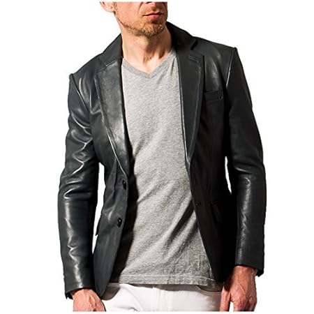 (リューグー) Liugoo 2ボタン スリムフィットレザーテーラードジャケット LLサイズ ネイビー TLD01A