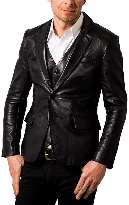 (リューグー) Liugoo 2ボタン スリムフィットレザーテーラードジャケット Mサイズ ブラック TLD01A