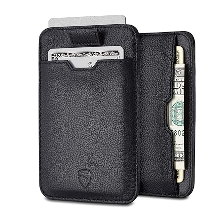 [Vaultskin] スリムなチェルシー カードスリーブ札入れ によるRFID保護付 イタリアンレザー-最大14枚のカード用超薄型カードホルダーデザイン (黒)