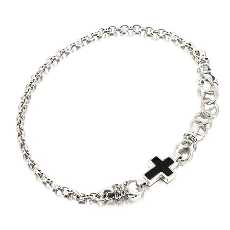 [orris7] シルバー 925 アンクレット ブラック オニキス 人気 クロス 十字 きれいめ カッコイイ オシャレ 天然石 ミサンガ メンズ
