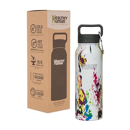Healthy Human (ヘルシーヒューマン) ステンレススチール製ウォーターボトル | 二重壁真空断熱ウォーターボトル 大人用 | 環境に優しいトラベルボトル 漏れ防止蓋付き (ストーンホワイト 21オンス/621ml)