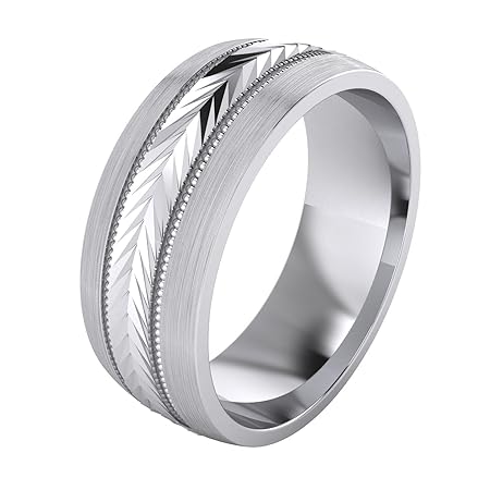 Landa Jewel Heavyスターリングシルバー8 mmメンズウェディングバンド矢印パターン化リングComfort Fit Brushed
