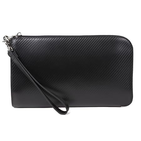 [ムラ] クラッチバッグ メンズ レザー 本革 コードバン調 L字ファスナー カーボンレザー(カーボン/ブラック)