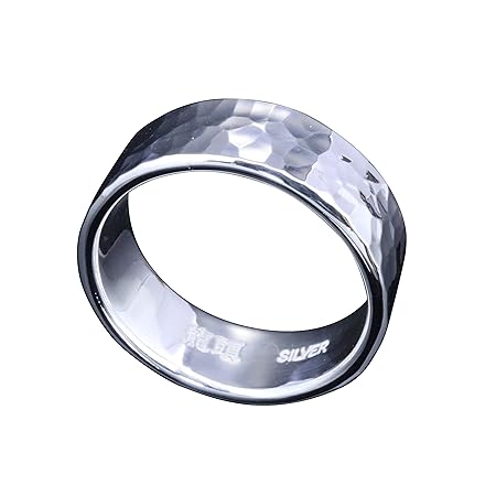 [龍頭] シルバー 950 丸 鎚目 リング 幅 8mm メンズ 指輪 シンプル 23号