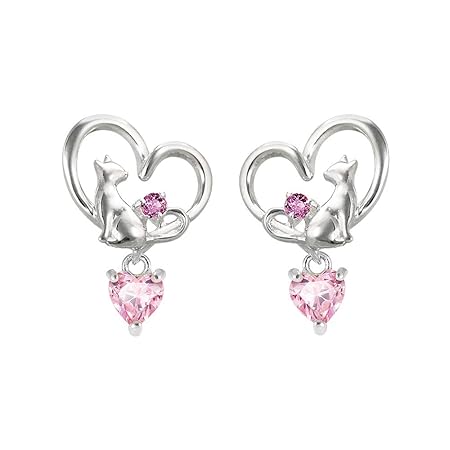 選べる 誕生石 ピアス レディース 人気 AAAランク ジルコニア ネコ ハート シルバー 誕生日 プレゼント に! MIE3127CZ_PK (1月:ロードライトガーネット)