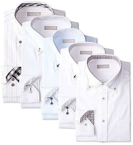 [ドレスコード101] ワイシャツ 福袋 5枚セット 好印象を与えるデザイン 形態安定 透けにくい 中身がわかる Yシャツ ビジネス FUKU-5 メンズ スリムタイプ 首回り39×裄丈82 (日本サイズM相当)