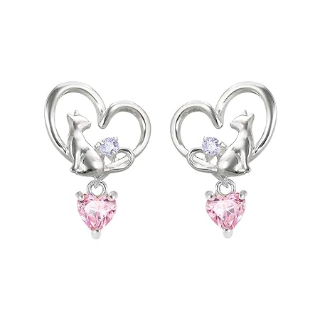 選べる 誕生石 ピアス レディース 人気 AAAランク ジルコニア ネコ ハート シルバー 誕生日 プレゼント に! MIE3127CZ_PK (12月:タンザナイト)