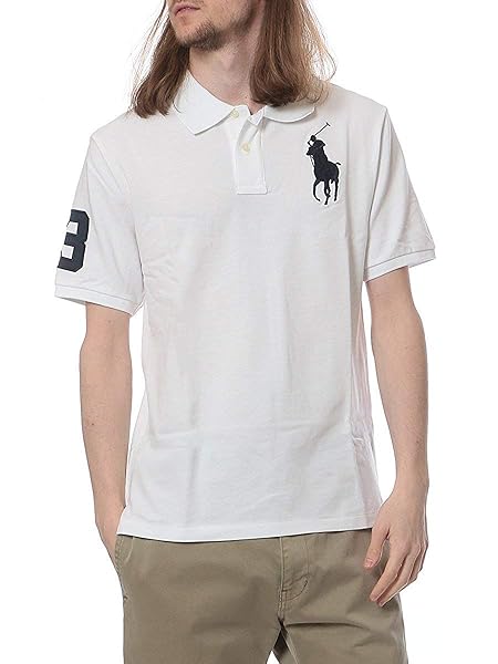[ポロラルフローレン] 綿100% ビッグロゴ刺繍 半袖 ポロシャツ ホワイト/L