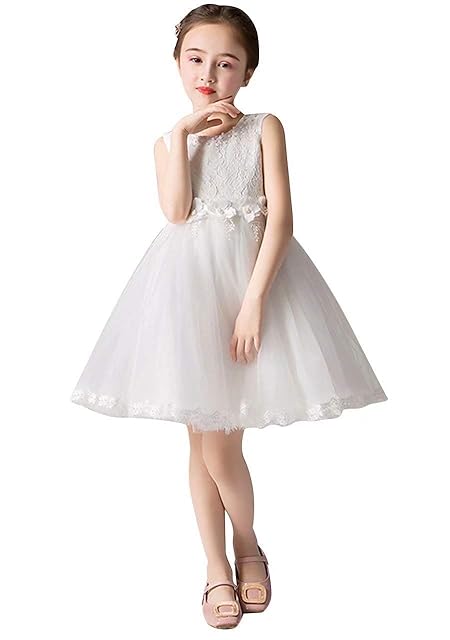[OMZIN] 子供ドレス 女の子 フォーマル 発表会 結婚式 ノースリーブ フラワーガール ワンピース パーティドレス女児 花びら ロングドレス 入園式 ホワイト 130