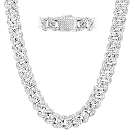 KRKC&CO 喜平ネックレス ジルコニア マイアミ キューバンチェーン 12mm ホワイトゴールドメッキ CZダイヤ 太目 メンズネックレス チョーカー ヒップホップ ダンサー ラッパー アクセ 46cm