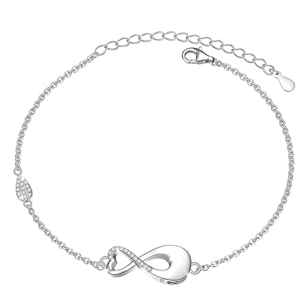 Ladytree S925 スターリングシルバー 骨壺 灰 インフィニティ ヒマワリ 十字架 天使の翼 ブレスレット 女性用, 9 inch, スターリングシルバー。, キュービックジルコニア