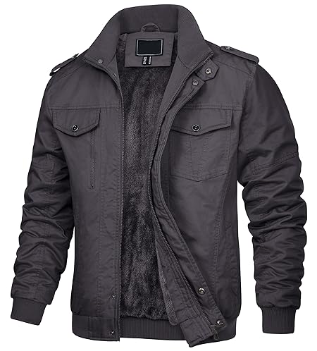 [KEFITEVD] 防寒ジャンパー 綿 ジャケット メンズ アーミージャケット 軍 ワークウェア アメリカン トップス スタイリッシュ 灰 グレー XL