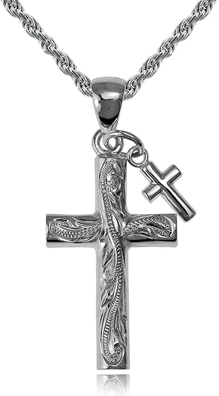 [レイラニ] ハワイアンジュエリー ダブル クロス スクロール彫り ペンダント ネックレス シルバー 925(ロープチェーン60cm付)