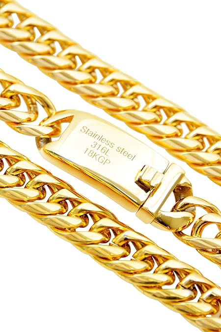 [RaHash] 喜平 ネックレス チェーン メンズ ステンレス 316L 18K コーティング [ ゴールド ダブル 幅12mm 長さ65cm ]