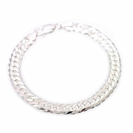 [シルバーワン] イタリア製 シルバー925 ダブル 喜平 ブレスレット メンズ c4 [銀色 6面カット 幅8mm 厚2.5mm 長19cm]