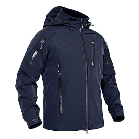 [KEFITEVD] ソフトシェルパーカー メンズ 防風 防寒 マウンテンジャケット 撥水 バイク ジャケット 冬用 釣りウェア 作業着 ジャンパー トレッキング 裏フリース ジャケット 紺 ネイビー L