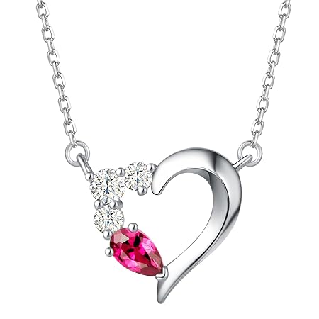 [AGVANA] レディース ネックレス ルビー 7月 誕生石 ハートネックレス シルバー 女性 人気 ホワイトデー お返し アクセサリー 誕生日 クリスマス 母の日 プレゼント 綺麗な包装付き(ルビーネックレス)