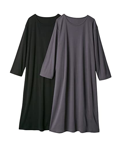 [ニッセン] パジャマ・ルームウェアトップス 3秒ルームワンピース2枚組(綿混・長袖) チャコールグレー+黒 6L