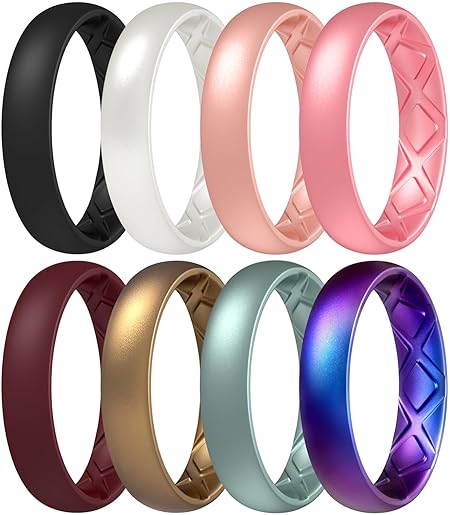 Egnaro女性用シリコンアニバーサリーリング、幅5.5mm、厚さ2mmのゴムバンド、ワークアウトに柔軟。, 4.5-5, シリコーン, 宝石なし