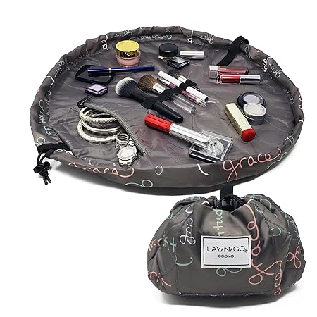 Lay-n-Go Cosmo 巾着コスメ&メイクアップバッグオーガナイザー - ポータブル巾着メイクアップバッグ、ジッパーポケットなど付き - 丈夫で洗濯機洗い可能な旅行用メイクアップバッグ(20インチ、Grit Grace Gratitude), マルチカラー, 20 Inch, 伝統的