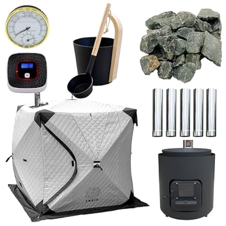 AMBER サウナテント totonoi2 & 遮熱板付別注薪ストーブ BLACK オールインワンセット (ストーングレー)