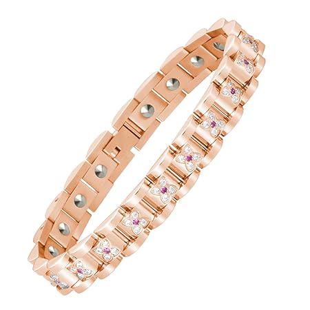 [HyyMe] 静電気除去 ブレスレット ゲルマニウム ブレスレット (純度 99.999% のゲルマニウム粒子)、長さ調節可能、ステンレス スチール、四つ葉のクローバーのデザインで、誕生日や記念日 プレゼント クリスマスプレゼント(ローズゴールド)