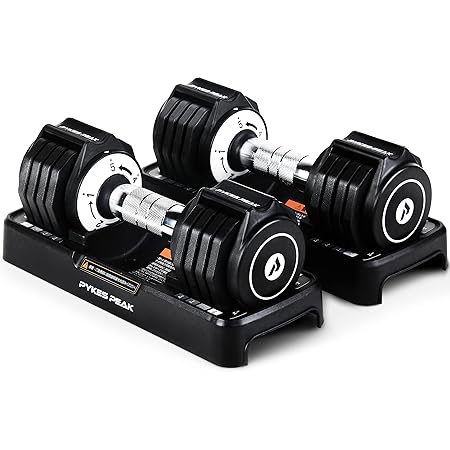 PYKES PEAK 可変式 ダンベル 5kg 2個セット 【 重さ調節可能 錆び防止加工 収納トレー付き 滑りにくいグリップ 転がらない 多角型プレート 】 ホームジム 筋トレ 宅トレ 筋力 トレーニング ウエイトトレーニン アジャスタブルダンベル アレイ (5kg2個セット/ブラック)