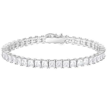 KRKC&CO テニスブレスレット シルバー925 プリンセスカット ジルコニア 2/3/4mm レディース ブレスレット K14金/ホワイトゴールドメッキ 4本爪 CZダイヤ キラキラ ジュエリー ブリンブリン ギフトボックス付 (4mm-シルバー, 16.5)