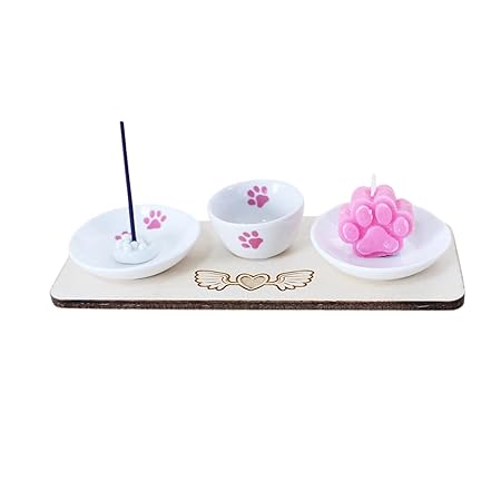 ペット 仏具 セット ウッドトレー 木製スタンド エンジェルハート 肉球 プリント ペット供養 かわいい (ピンク)